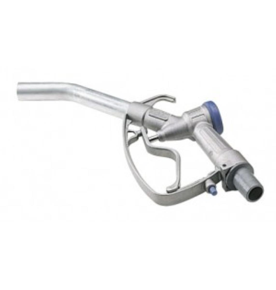 Manually operated diesel fuel dispensing nozzle, aluminum body, inlet with DN 25 mm swivel plastic hose nozzle.
