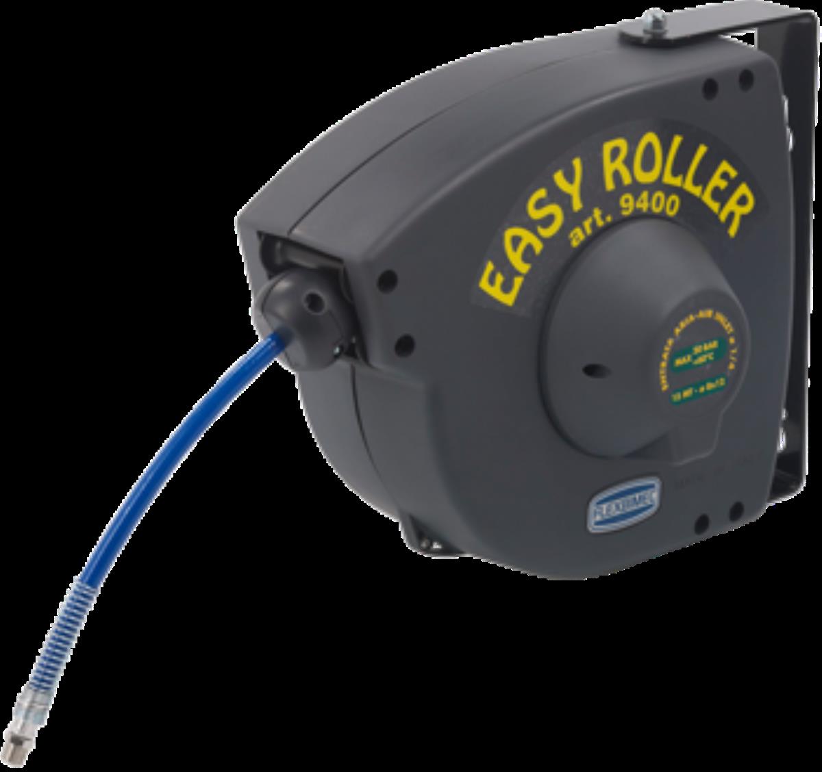AUTOMATIC HOSE REEL WITH PLASTIC HOSE (NYLON+POLYPROPYLENE) WITH ADJUSTABLE FIXING BRACKET, SUITABLE FOR BEING USED FOR PASSING COMPRESSED AIR OR WATER AT A MAXIMUM PRESSURE OF 20 BAR. COMPLETE WITH 15 METERS LONG BLUE POLYURETHANE HOSE DN 8x12.