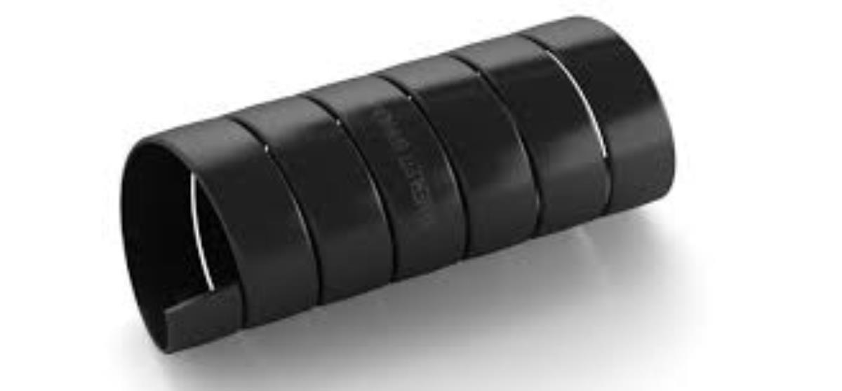 Spiral and curved shaped flat strip in rigid, shock-resistant HDPE (HIGH DENSITY POLYETHYLENE).